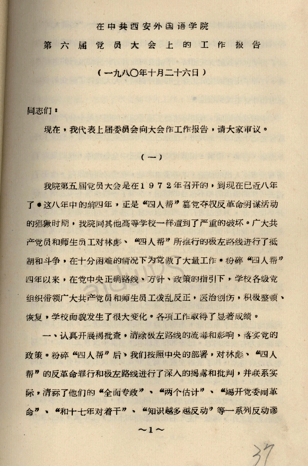 1980年10月25日,学院召开了第六届党员大会。张治平同志作了工作报告,大会通过了《克服官僚主义,改进领导作风》和《关于开展评选先进党支部和优秀党员活动》的决议。