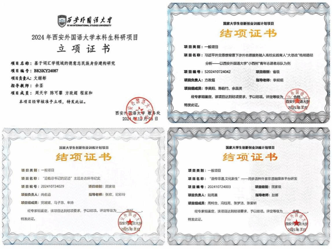 支部党员立足专业牵头推进多项国家级、省级大创项目,在钻研非遗与文化传播、外语专业就业、小语种志愿服务等领域均获佳绩。此外,我支部党员牵头获批校级本科生科研项目2项。一篇论文入选第二十七届外语外贸院校学生工作年会论文集。